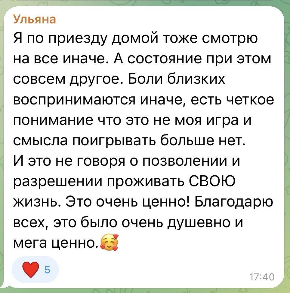 Этот ретрит и для женщин и для мужчин. Для тех, кто хочет окунуться в атмосферу любви, поддержки и принятия. Кому важно сейчас что-то изменить в своей жизни. Обрести силу, уверенность и ясность.